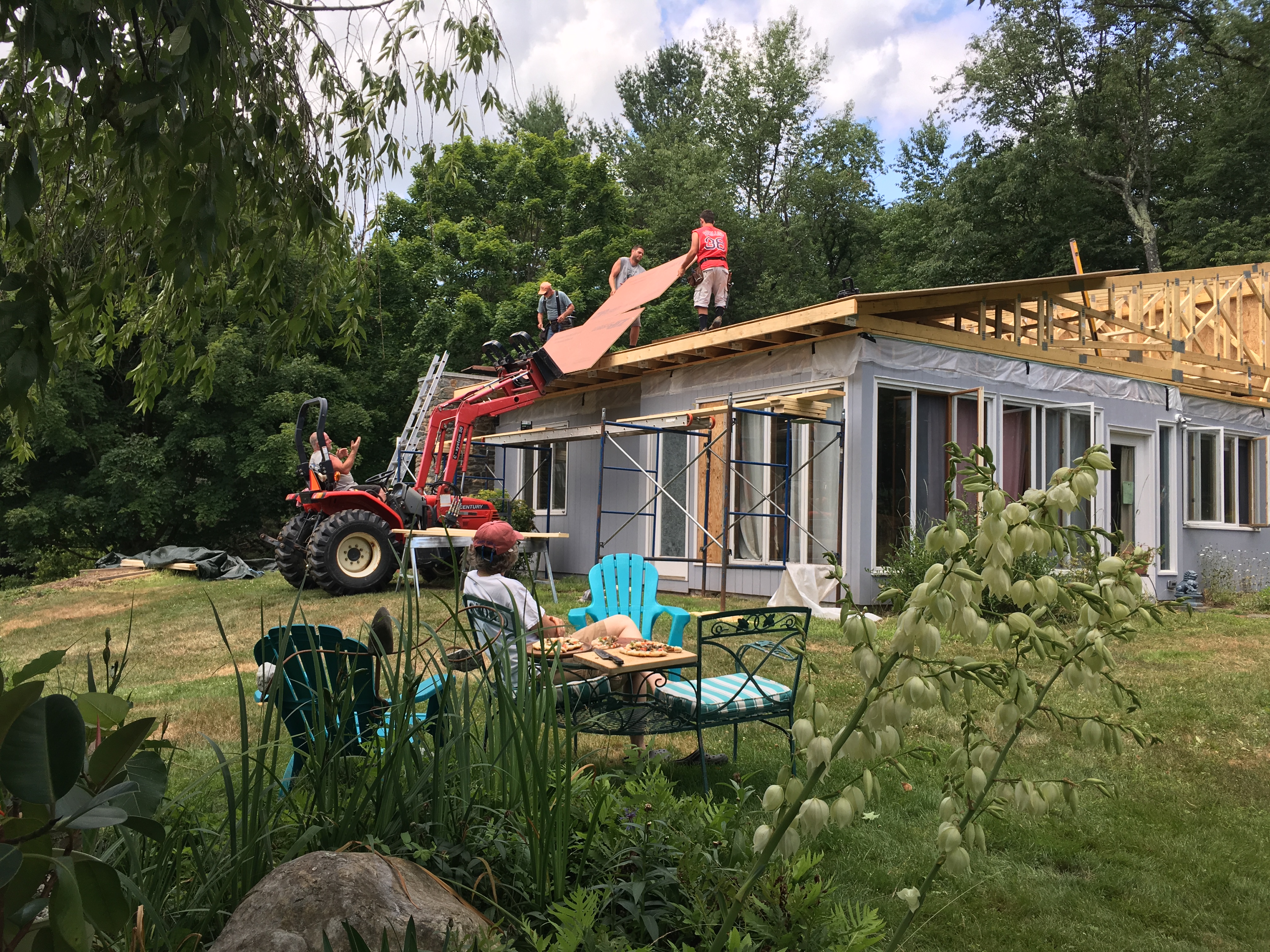 Kevin-the-contractor gave us good news: the trusses will arrive on July 6th, which means that we should have a watertight roof over the house by July 10th. That will be a relief for everybody.